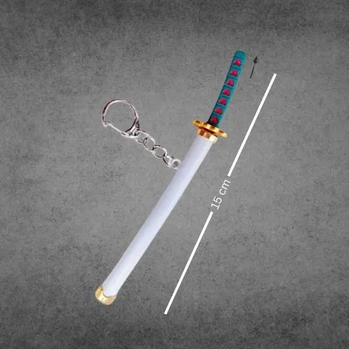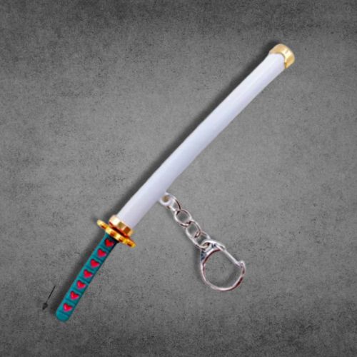 Demon Slayer Katan Key Chain (White Katana Blue Handle Pink Heart)